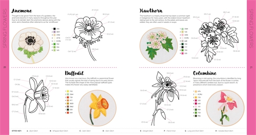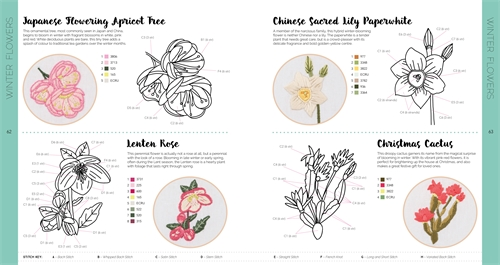 An anthology dedicated to floral embroidery, with hundreds of botanical motifs, step-by-step instructions and ready-to-copy patterns.