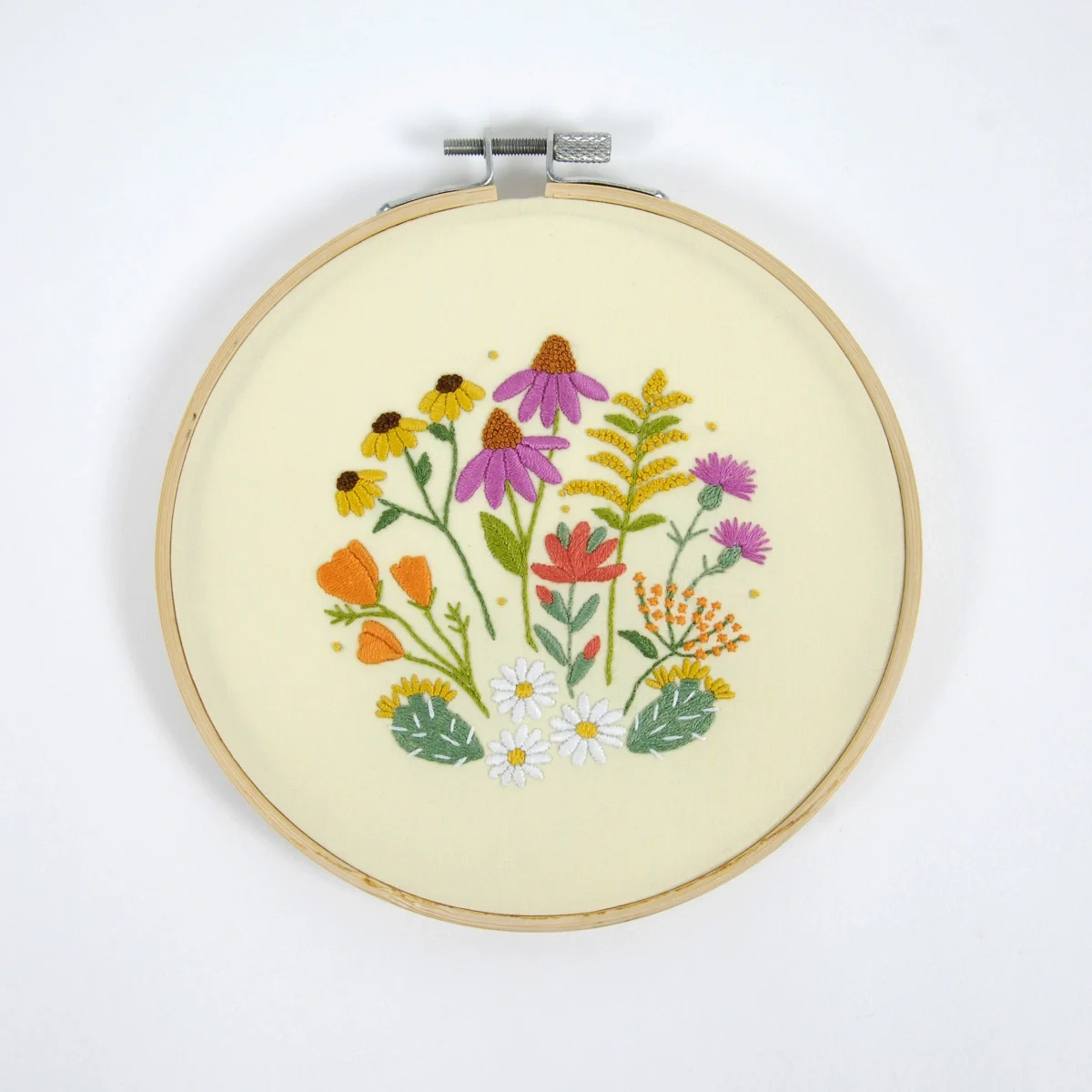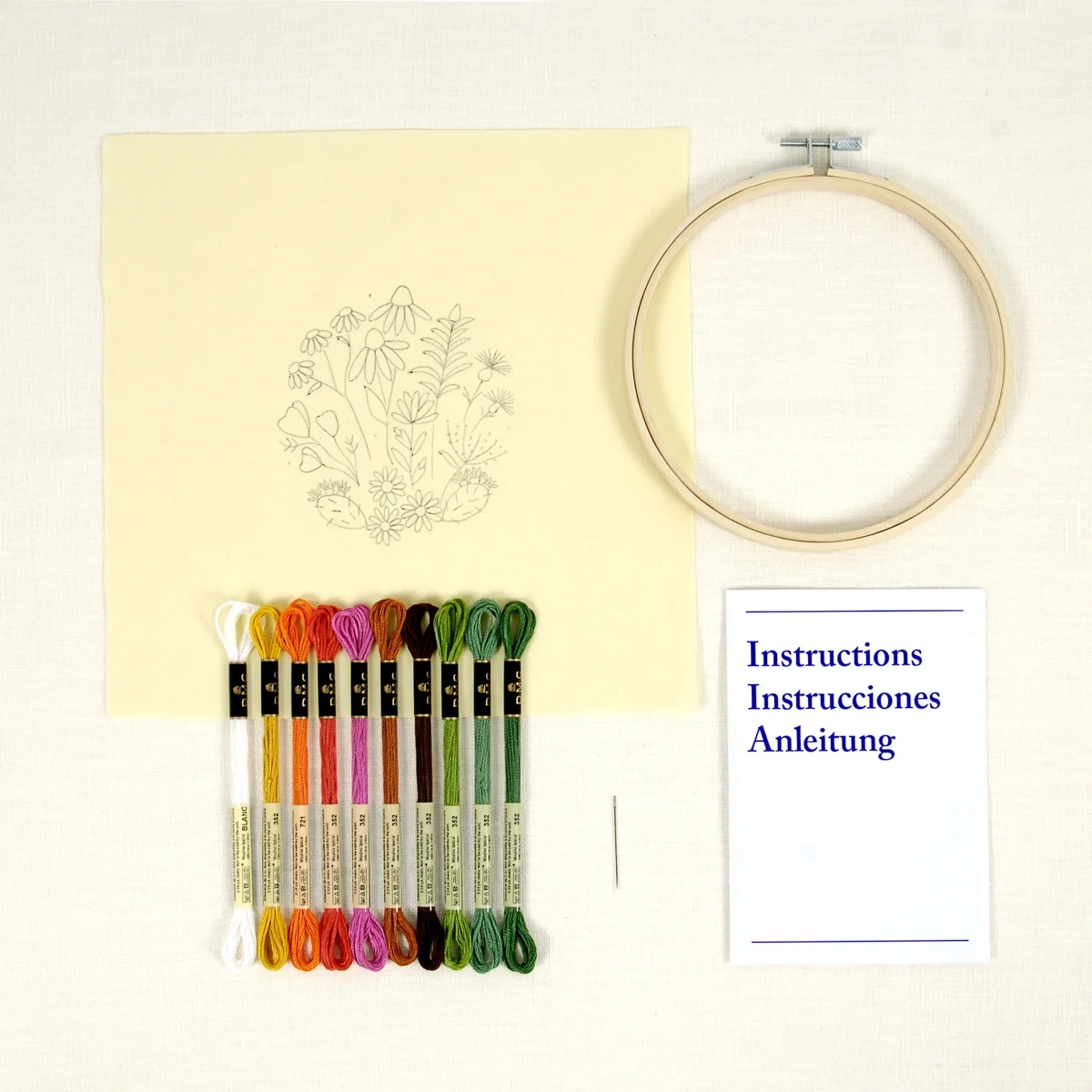 It’s embroidery artist Celeste Johnston’s turn to enchant us with this kit inspired by flowers in the countryside, where nature in its most spontaneous form knows how to surprise us with its colors and combinations. This DIY kit consists of: