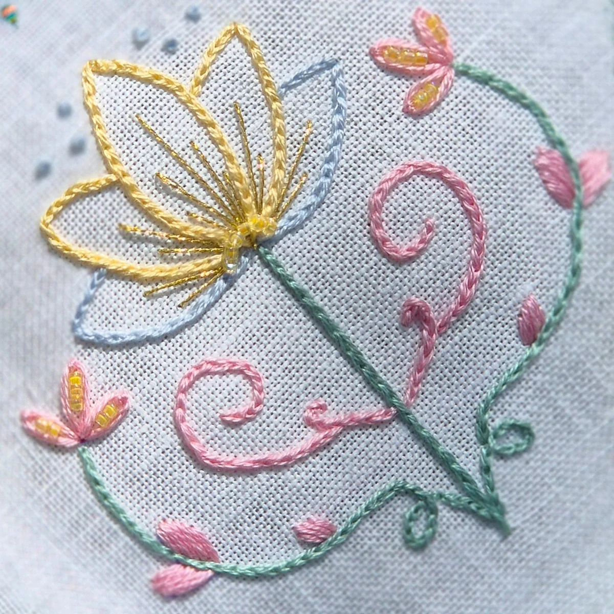 A bright pastel palette combining lilacs, soft pinks, mint greens, light blues and delicate yellows – perfect for light, fresh embroideries full of springtime sweetness.