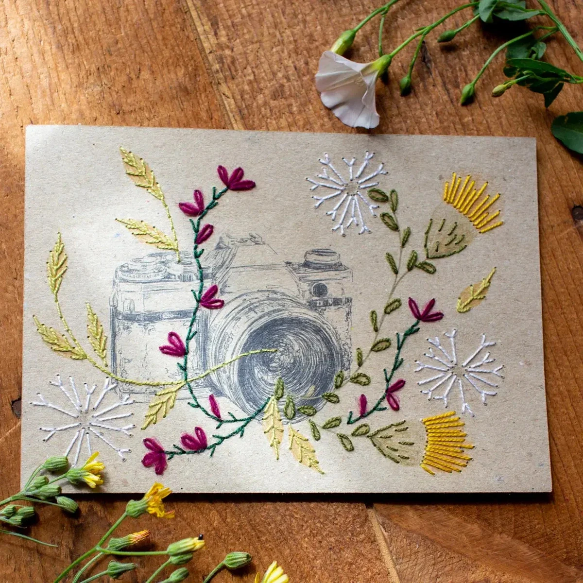 Complete DIY kit including card, embroidery threads, needle and instructions.