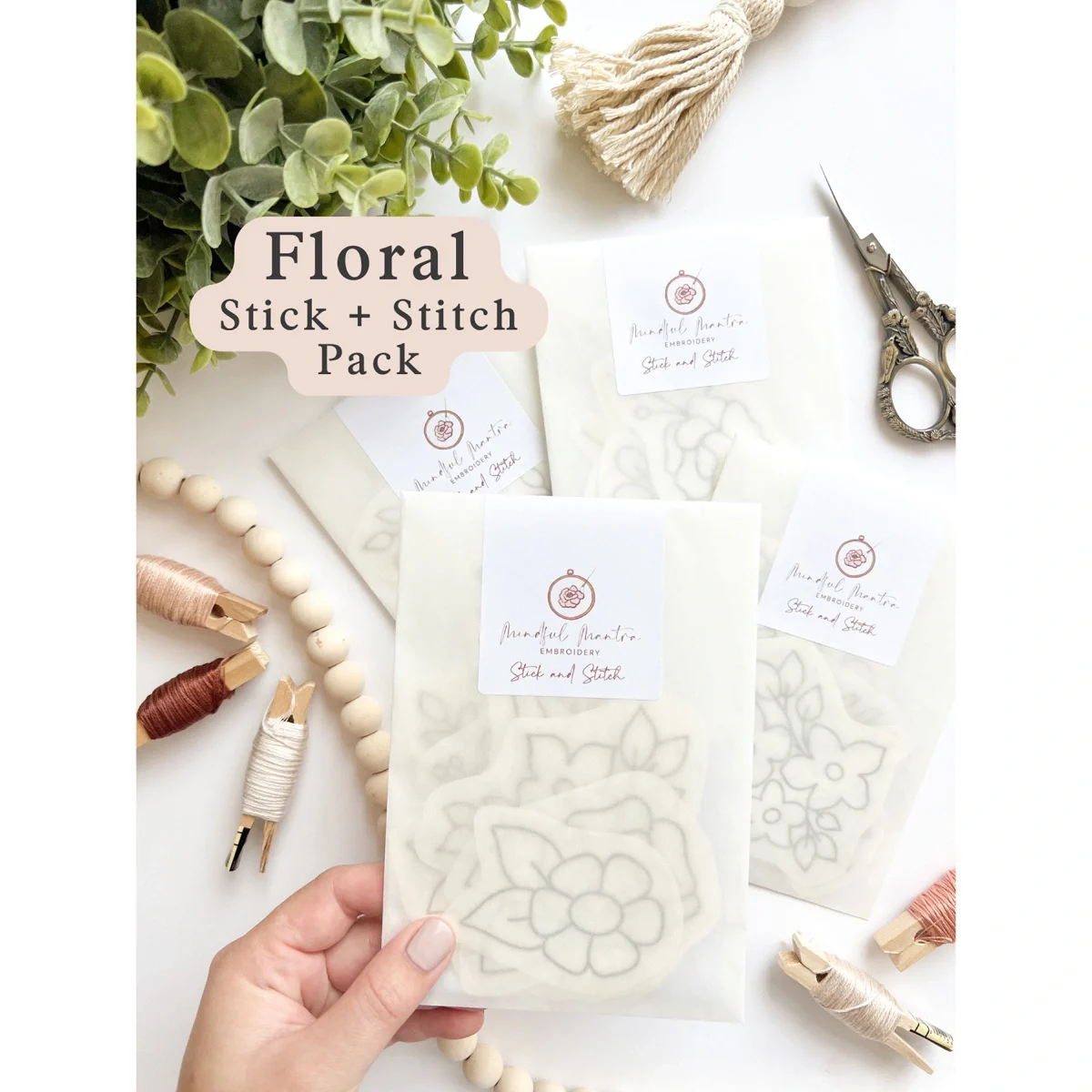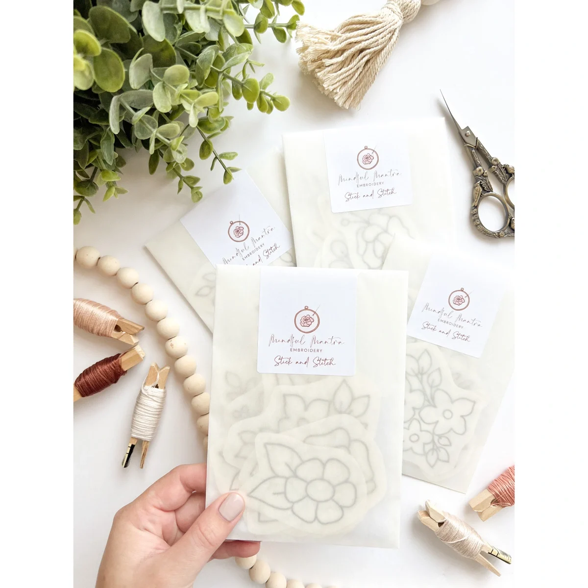 The sets vary in size and number (from 11 to 24 designs) and are made and packaged by hand by the creator of Mindful Mantra Embroidery in England.