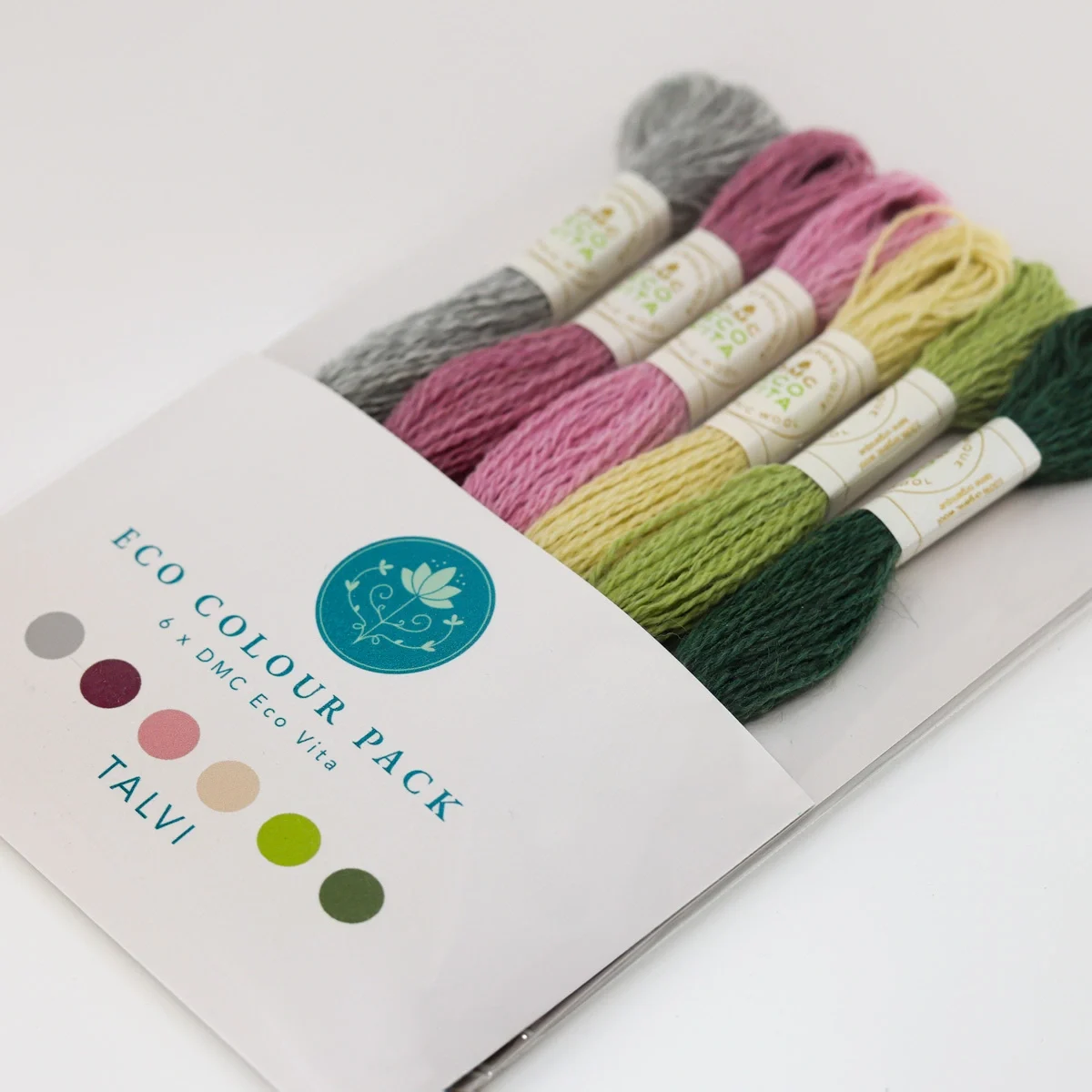 Se queres marcar a diferença, os Eco Colour Packs são para ti: conjuntos únicos de 6 meadas do fio DMC Eco Vita, 100% lã orgânica, tingidas exclusivamente com corantes naturais como noz, índigo, ruiarbo e zimbro.