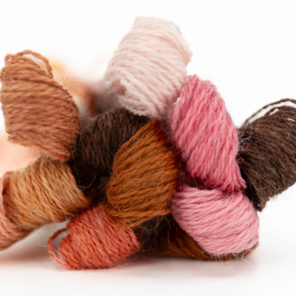 Fio de bordar de lã orgânica DMC Eco Vita, em meadas de 16 m, tons rosa e castanho