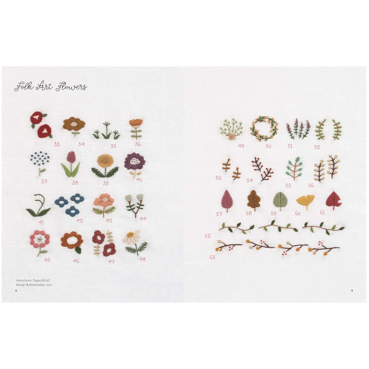 Livro com 550 pequenos desenhos e padrões para bordar. Inclui referências de cor DMC e pontos para cada motivo. Em inglês.
