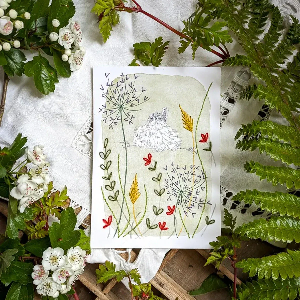 Foi a pensar nisso que decidi trazer-vos este kit de bordado em papel. Embalado num envelope semi-translúcido, inclui um cartão em papel (tamanho postal), fios de bordar, uma agulha e instruções simples em inglês, com acesso a um e-book com instruções mais detalhadas, em francês.
