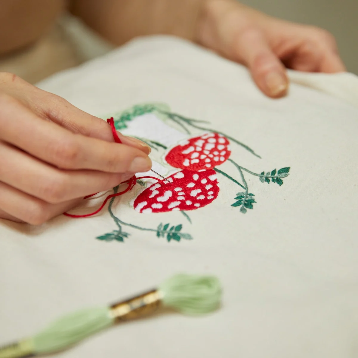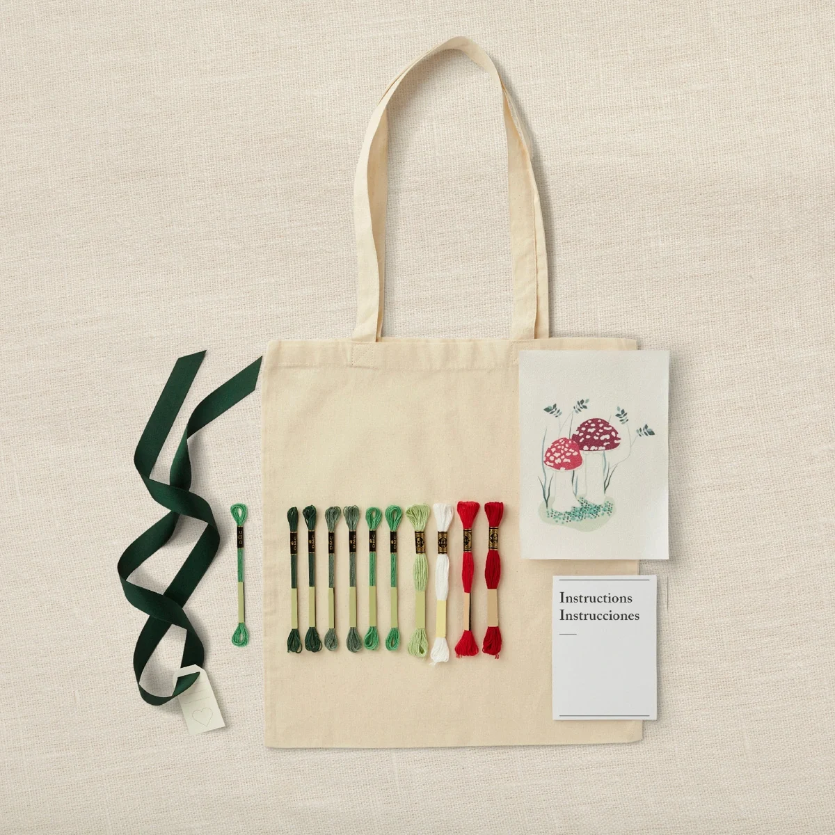 Kit de bordado DIY com tote bag em algodão, inclui meadas DMC, agulhas e instruções