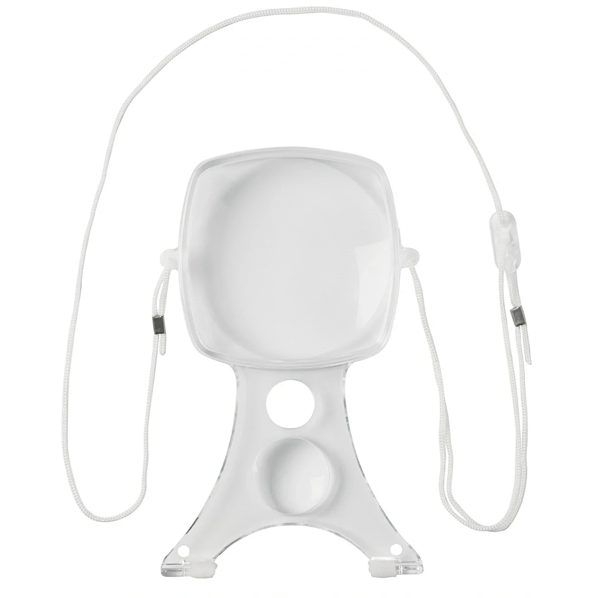 Lupa de pescoço com lente de 10 cm e ampliação de x2. Mãos livres e visão nítida para bordados detalhados.