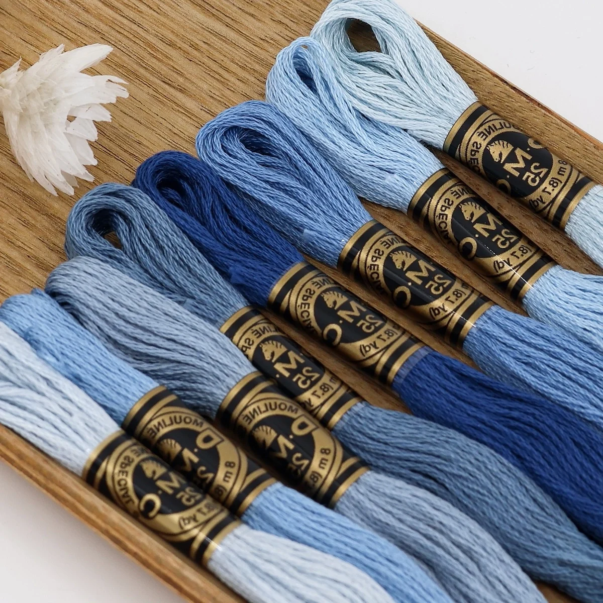 Um recorte de linho numa cor que entra em perfeita sintonia com o conjunto de 8 meadas DMC Mouliné Spécial;