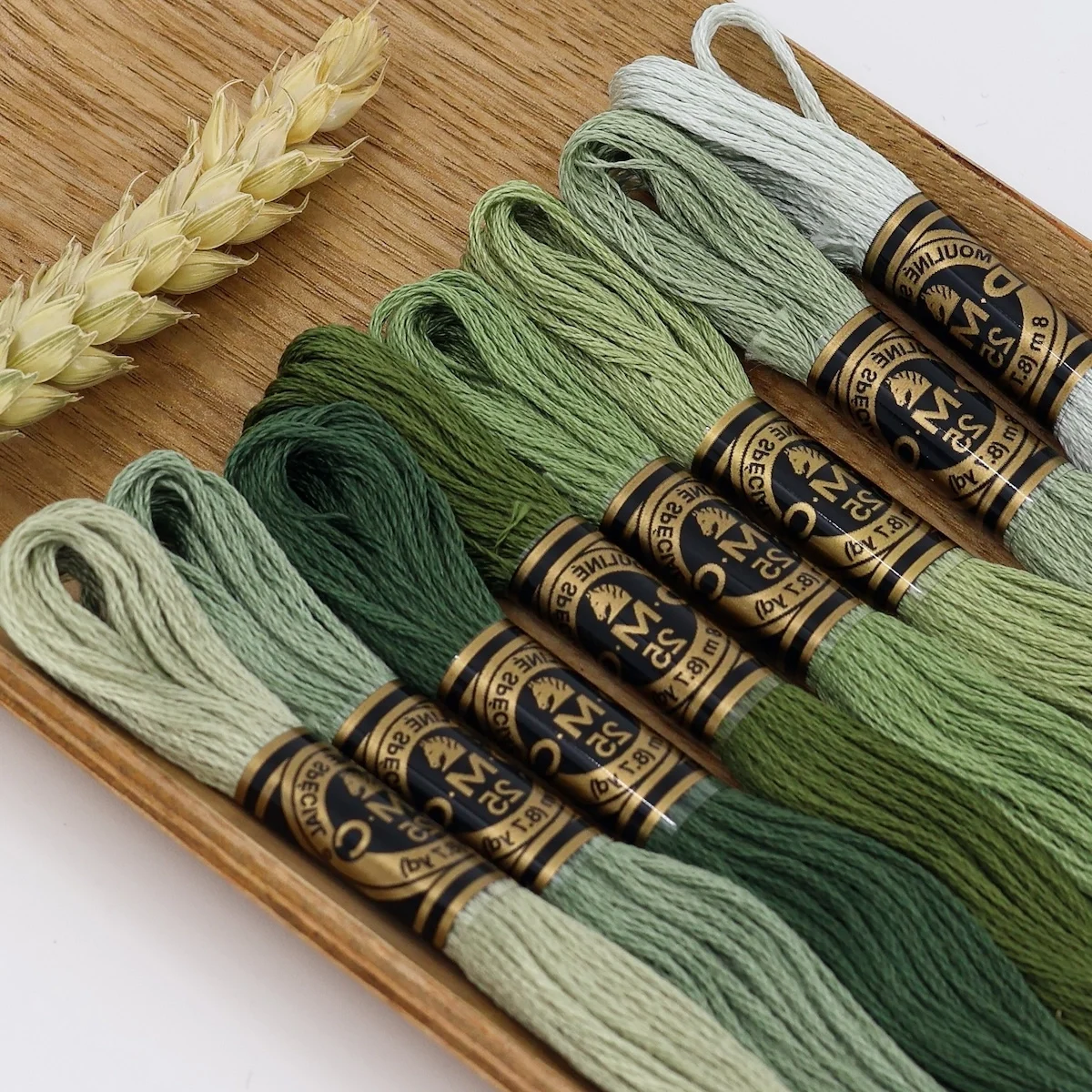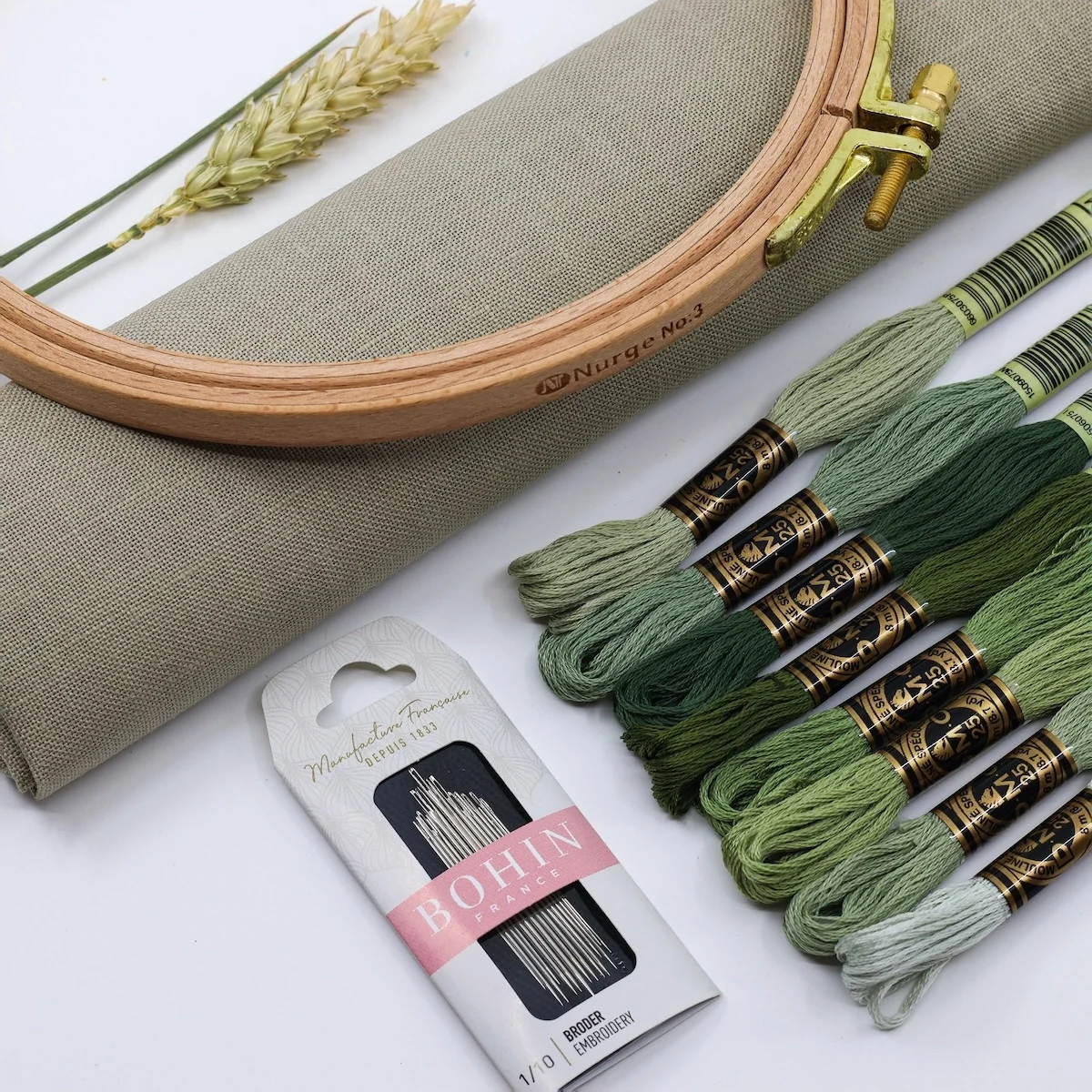 Um recorte de linho numa cor que entra em perfeita sintonia com o conjunto de 8 meadas DMC Mouliné Spécial;