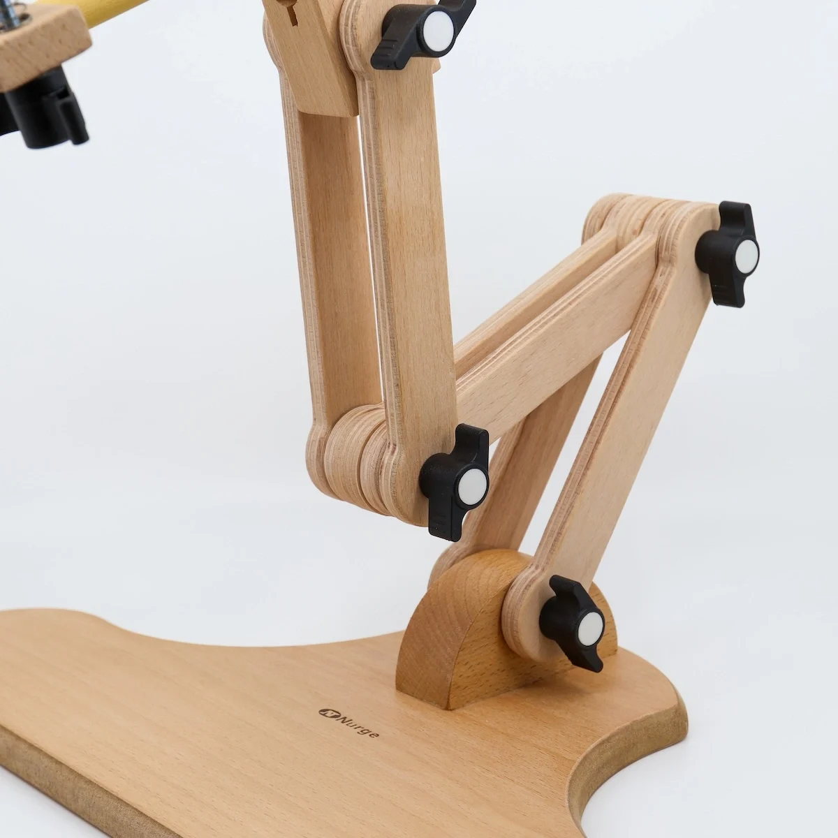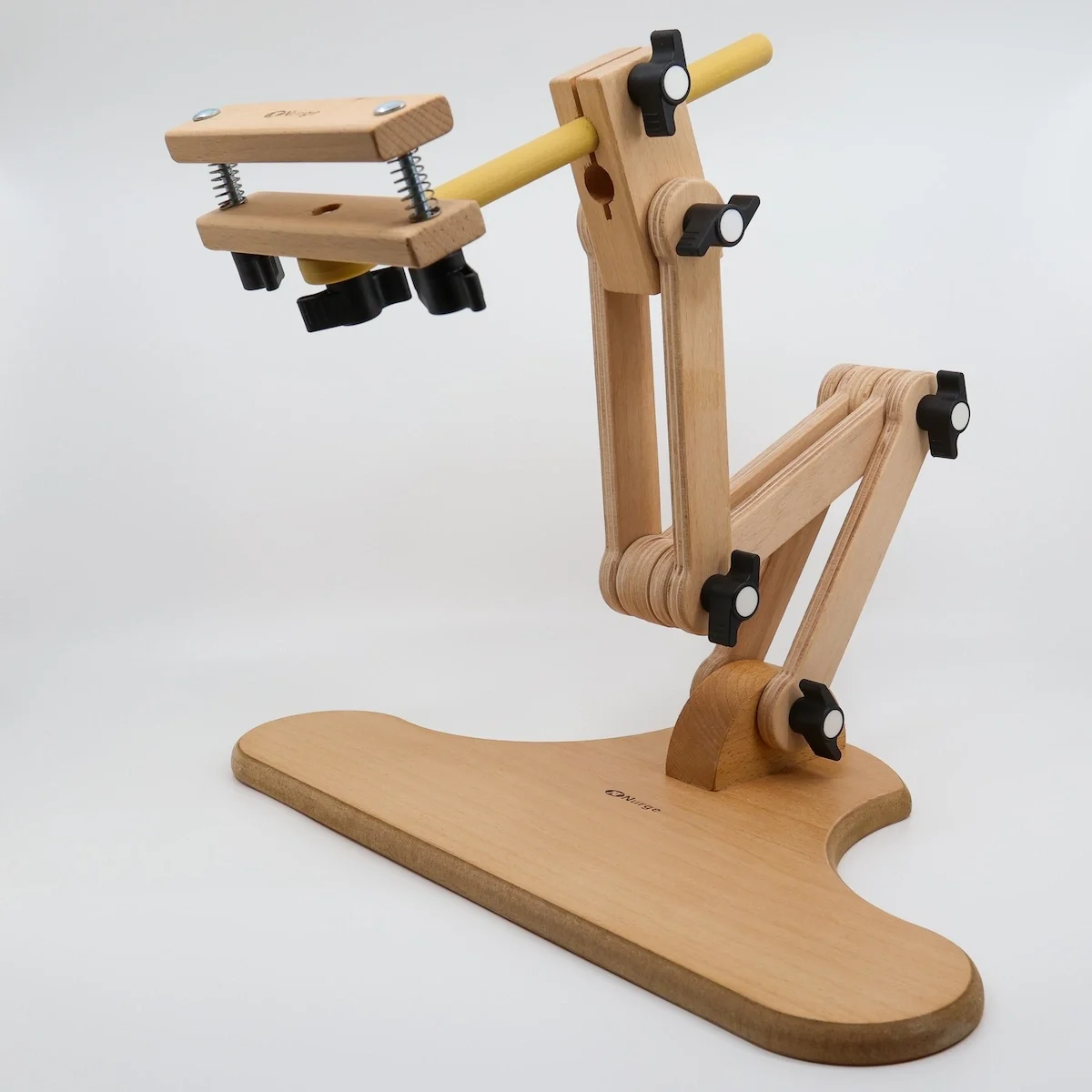 Suporte de bastidor em madeira maciça com 5 articulações e base estável. Ideal para bordar com conforto e mãos livres.