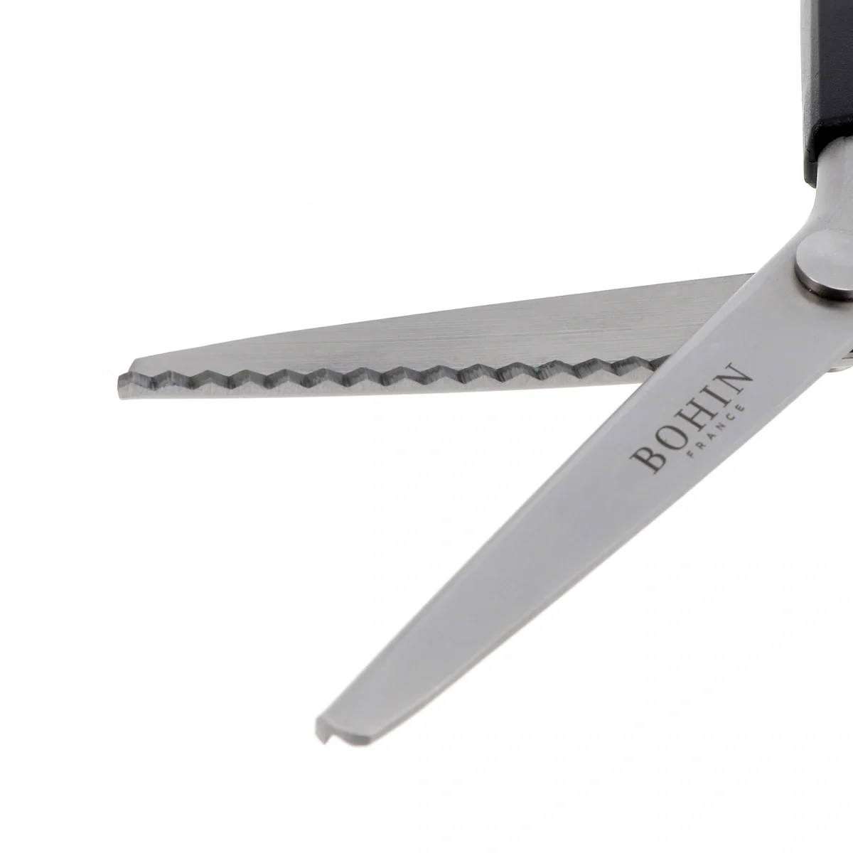 Esta tesoura de picotar da Bohin oferece uma qualidade de corte excecional. As lâminas em aço inoxidável garantem precisão e durabilidade e são ideais tanto para cortar várias camadas de tecido como para criar bordas decorativas em diferentes tipos de tecido.